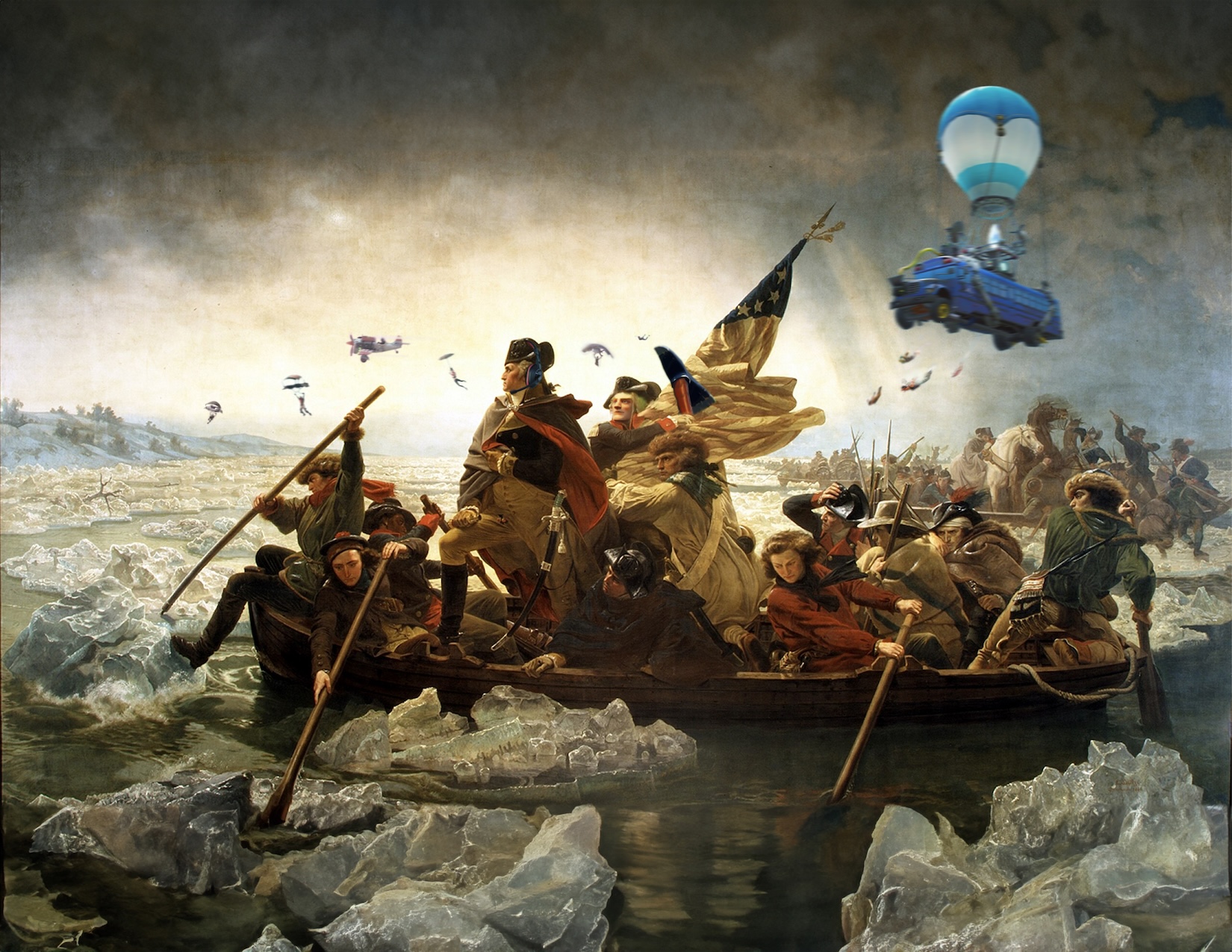 A parody of Emanuel Leutze's "Washington Crossing the Delaware," edited in Photoshop.
